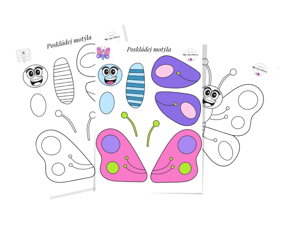 1️⃣ Motýl jako puzzle – dítě vystřihne malé kousky a složí z nich celého motýla.